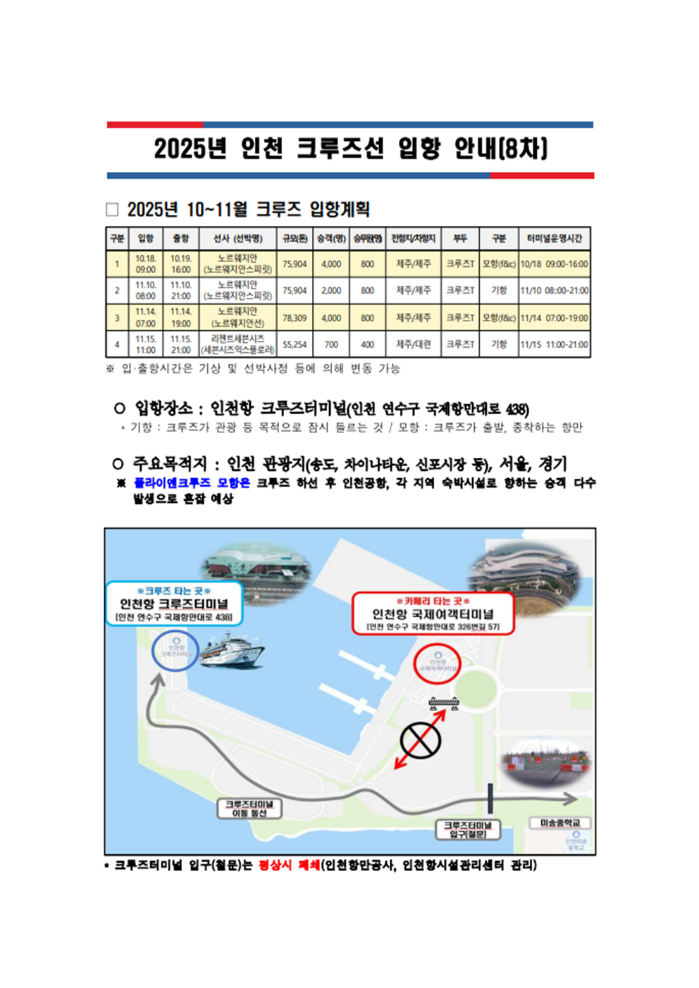 제목 : 2025년 인천 크루즈선 입합 안내(8차)