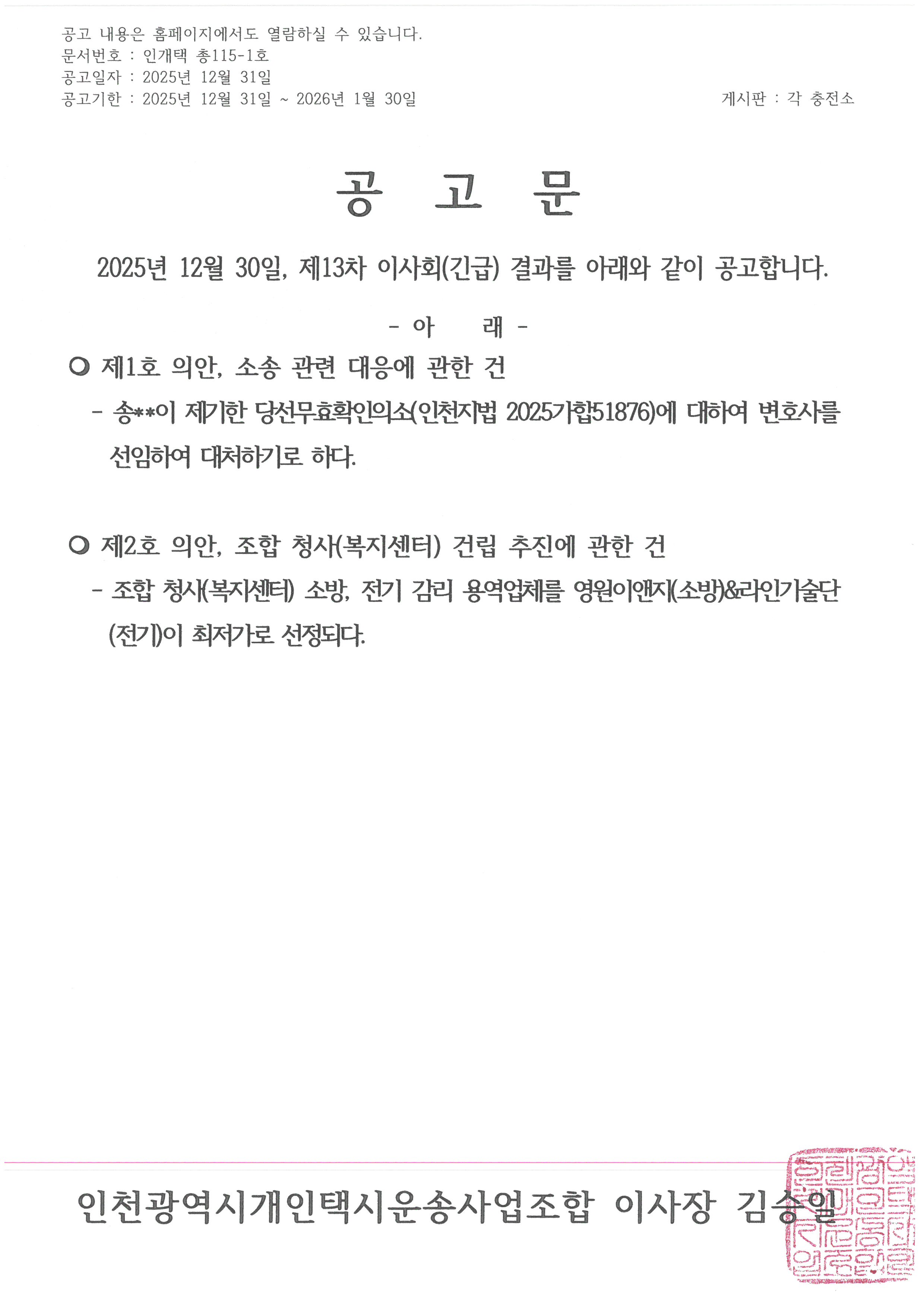 제목 : 2025년 제 13차 이사회(긴급) 결과
