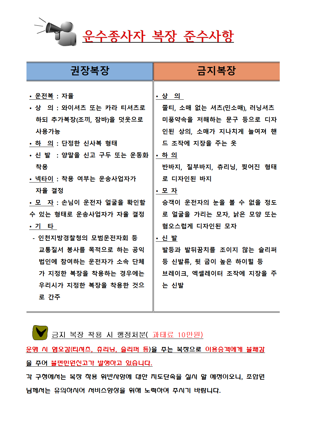 제목 : 택시운전자 복장 준수사항 안내