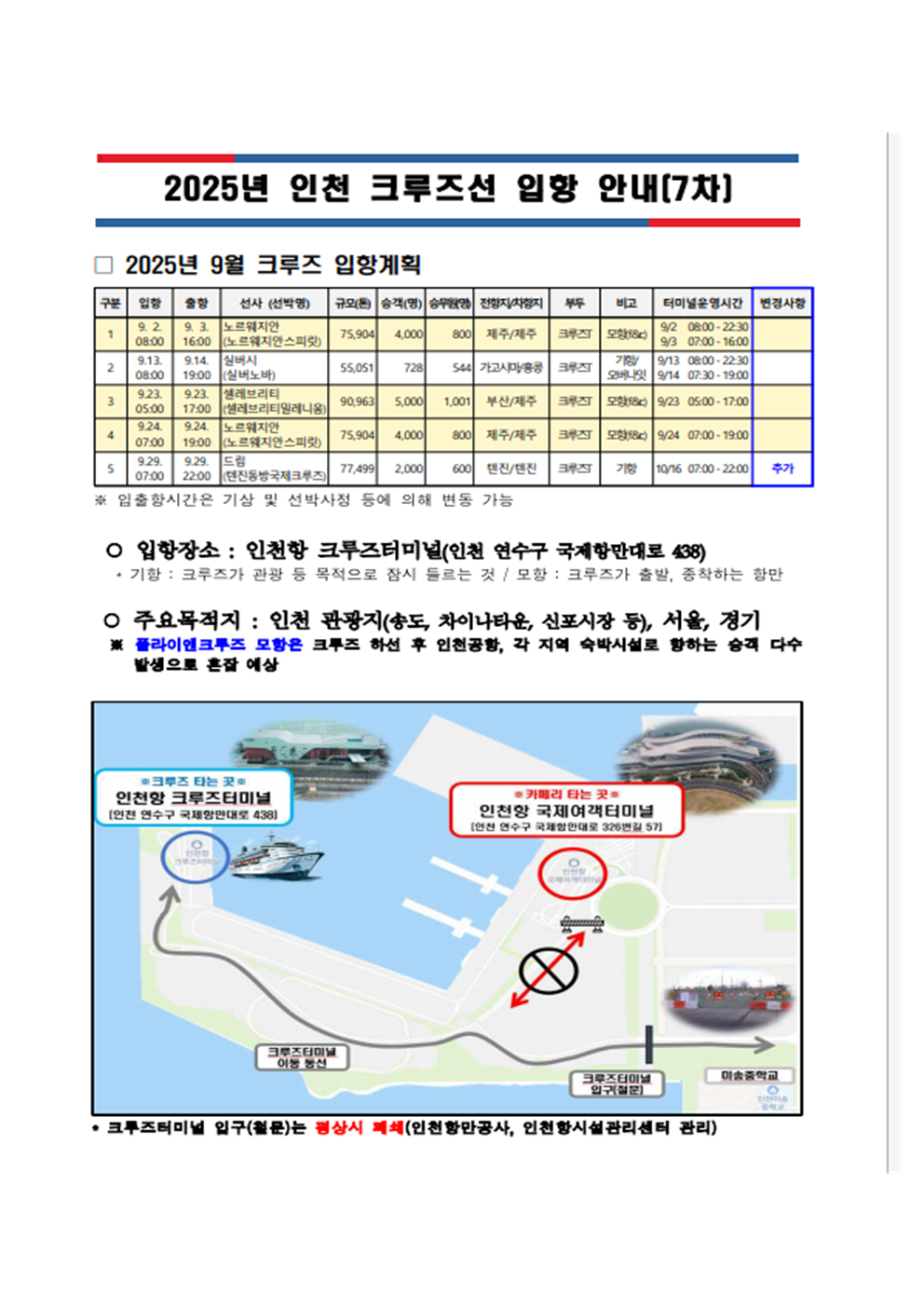 제목 : 크루즈 입항에 따른 운행 협조 안내