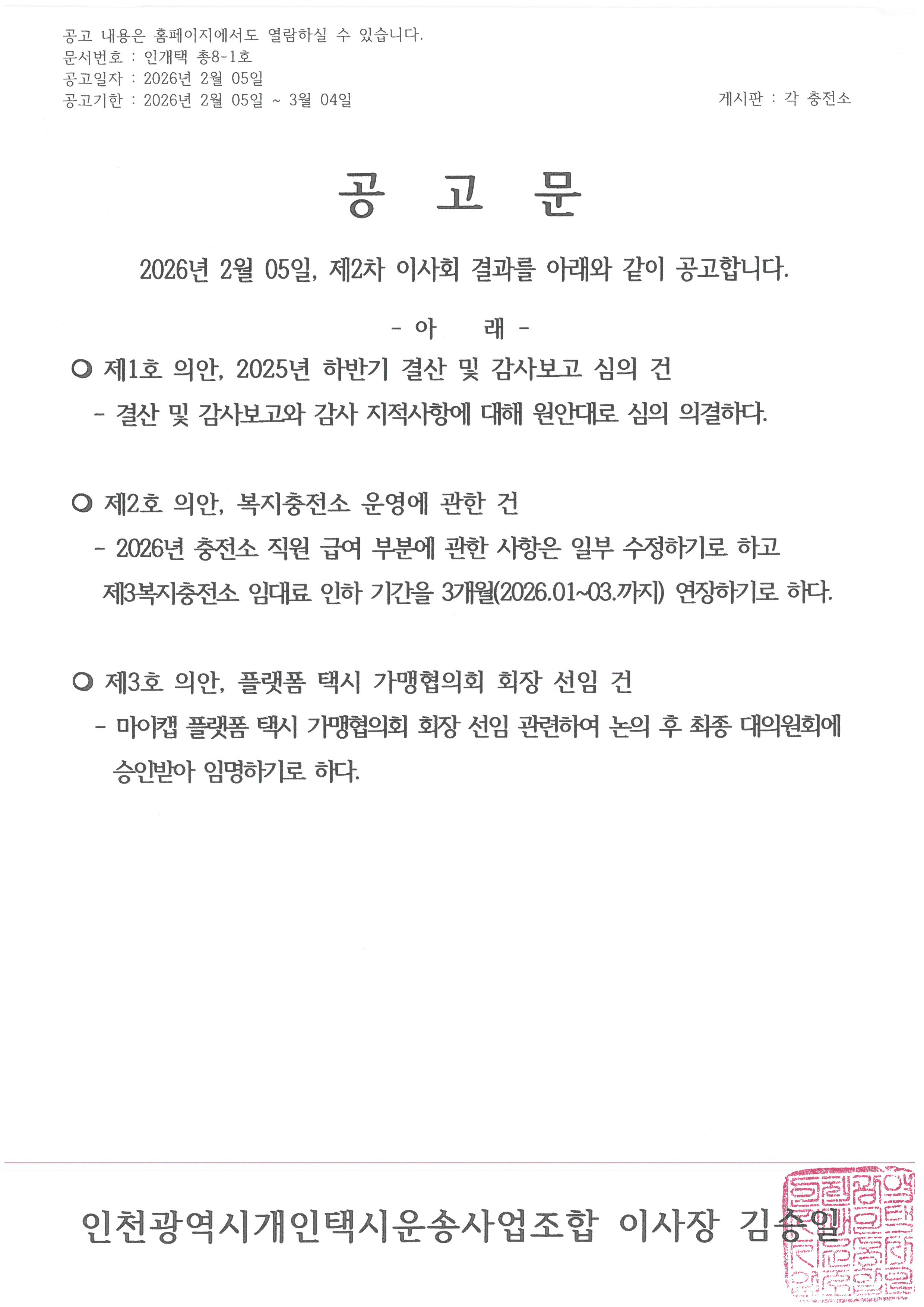 제목 : 2026년 제 2차 이사회 결과