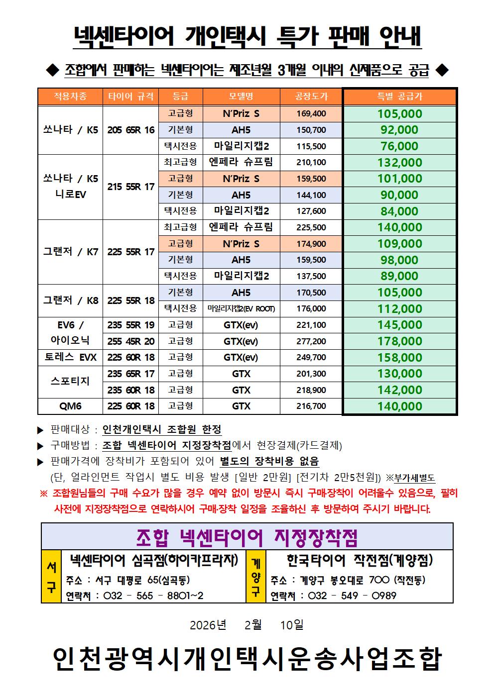 제목 : 넥센타이어 판매 안내문(2026년 2월)